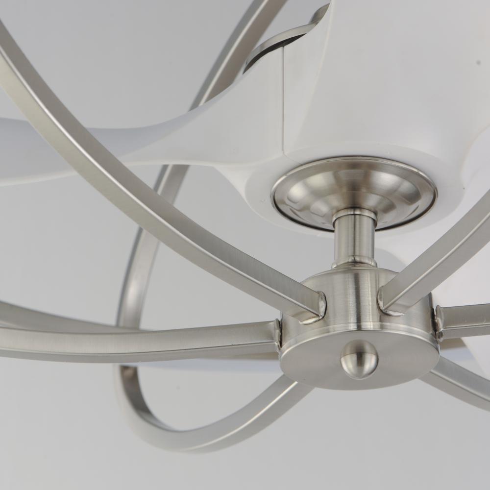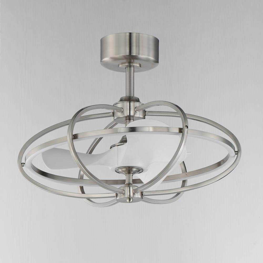 Taking the standard fan to the next level, Fandelights such as this one house a Wifi-enabled fan within a decorative chandelier frame. This transitional look features a minimalistic frame finished in your choice of Matte Black or Satin Nickel and a downwar