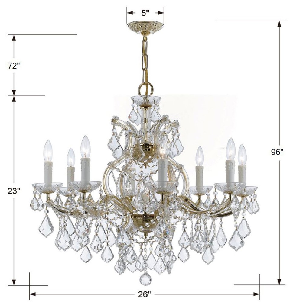 Draped in an abundance of crystal, the Maria Theresa collection is the epitome of high style. The fixture is stunning with glass arm frame decked with strands of faceted cut crystal. The fixture showcases opulence and decadence and is the perfect traditional accent to any space. Whether in a living room, or even closet or hallway, this fixture bring a luxurious addition to any decor.