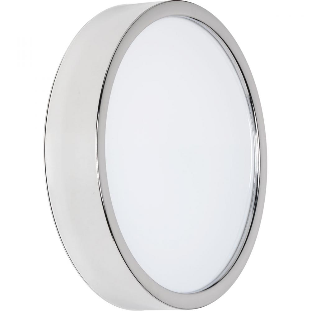 Industrial style LED flush mount adorned with industrial-inspired accents and white acrylic diffuser. One-light 29W LED 3000K, 90+ CRI in a Polished Chrome finish.